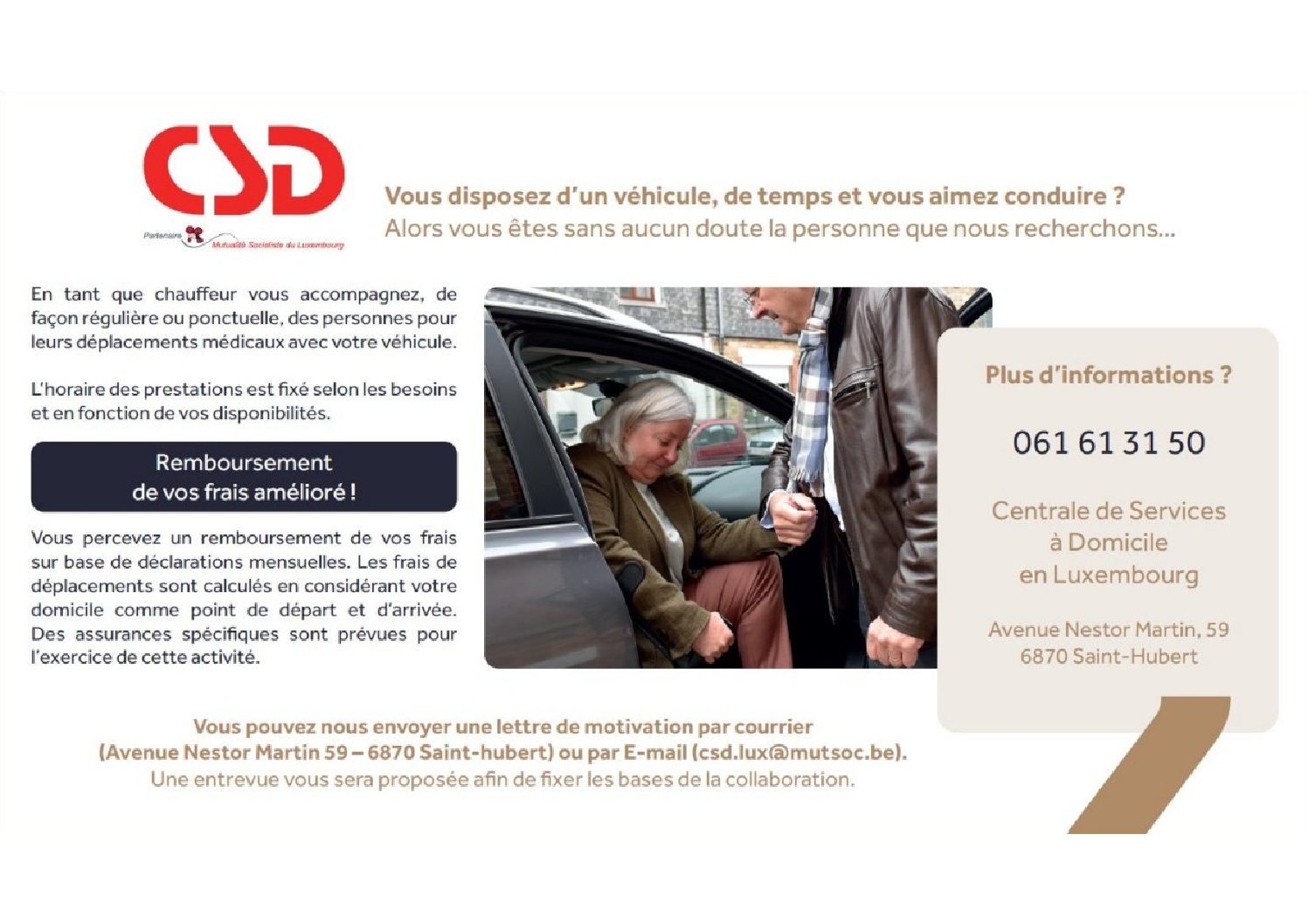 Informez-vous des possibilités de mobilités auprès de votre commune, CPAS ou auprès des associations locales.